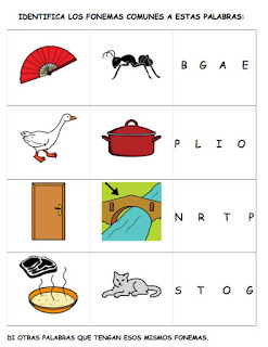 Hoy dejo unas fichas que he realizado con pictogramas de ARASAAC en las que el alumno debe identificar qué fonema o fonemas son comunes a los dos nombres de los dibujos.