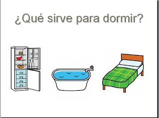 En ellos, se muestra una pregunta y tres pictogramas. Los alumnos tendrán que elegir el pictograma que responde a la pregunta formulada.