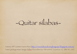 En ella, se presentan pictogramas de 3 sílabas y se indica la sílaba a quitar para que el alumno seleccione entre las opciones la palabra que resulta tras la supresión de la sílaba indicada.